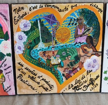 Art welcome! Presently Debra Breeze tells the story of her life in her exhibit From Dystopia to Eutopia! Comic Strip, statue, Satire, Vision, Personal Self-Care thru Sleep Scape + Pure Floral Essences...Silent Auction, come see!